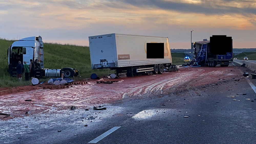 Один водитель получил легкие травмы. Мужчину доставили в больницу для обследования, но госпитализация ему не понадобилась. Участок дороги оставался закрытым в течение ночи, пока рабочие очищали залитый маслом и соусом асфальт.