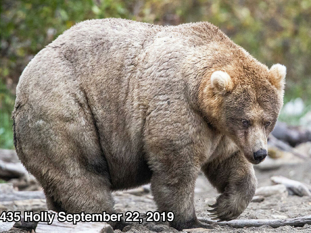 Медведь 747 принял пальму первенства у победительницы 2019 года по имени Холли. Вот, как выглядела накануне спячки эта упитанная малышка.