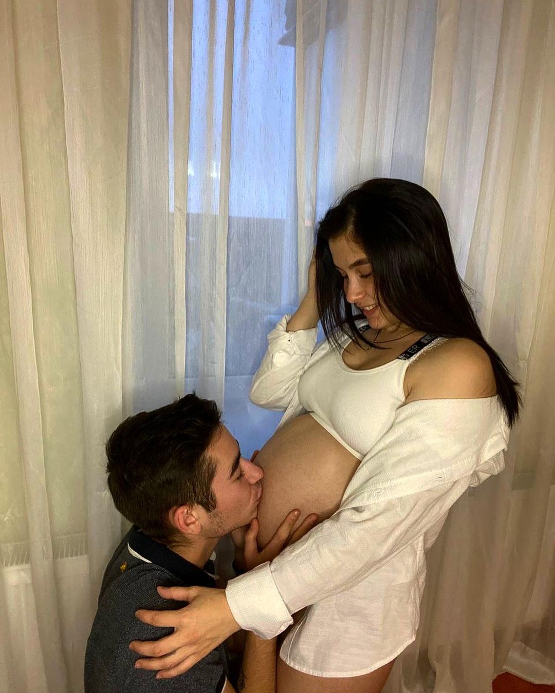 На своих страницах в Instagram влюбленные выложили серию кадров, сделанных в домашней обстановке. На снимках будущий отец нежно обнимает свою любимую и целует ее в живот. Несмотря на свою юный возраст, пара с трепетом ждет рождения малыша, о чем регулярно рассказывает своим подписчикам.