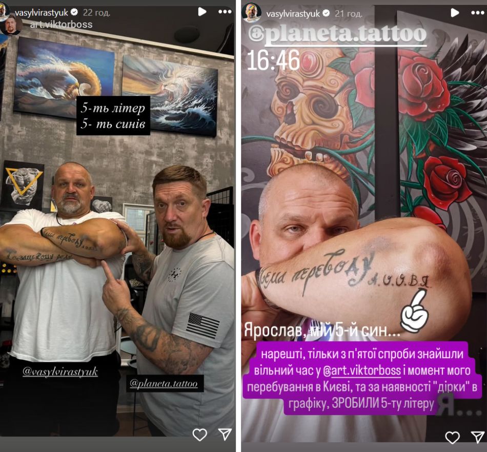 "Наконец-то, только с пятой попытки нашли свободное время с Виктором Карпенко и момент моего пребывания в Киеве, и при наличии "дыры" в графике сделали 5-ю букву "Я". Ярослав - мой пятый сын" , - рассказал в "сториз" народный богатырь.