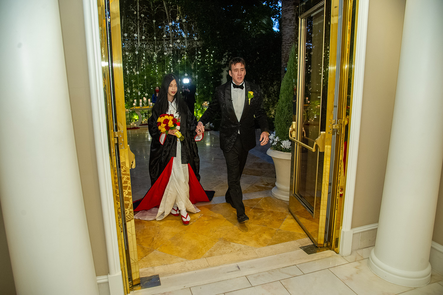 Для торжества невеста выбрала японское свадебное кимоно ручной работы из города Киото, жених предстал в смокинге дизайнера Tom Ford. Молодожены обменялись традиционными клятвами по католическим и синтоистским обычаям. После свадьбы Рико взяла фамилию мужа.
