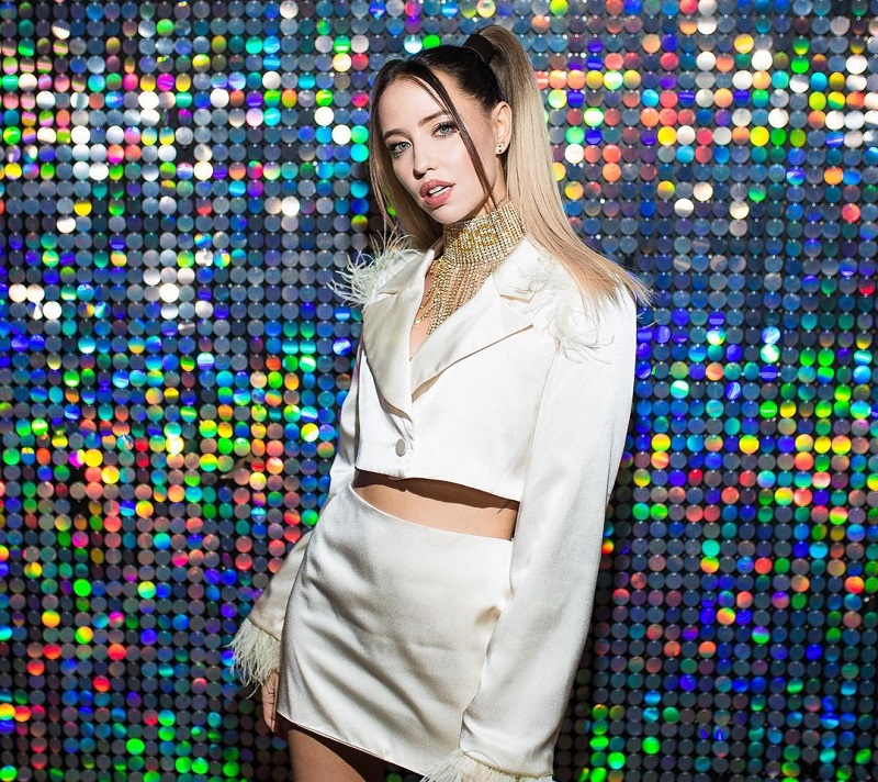 Для обладательниц стройной фигуры, как у певицы Нади Дорофеевой, советуем присмотреть костюм, состоящий из мини-юбки и укороченного пиджака. Чтобы образ выглядел по-настоящему празднично, советуем подобрать массивную бижутерию и сделать яркий макияж.