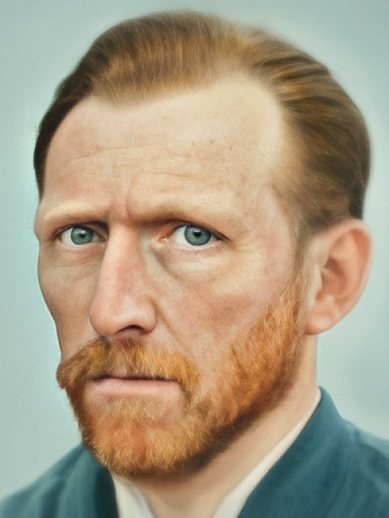 Так, по мнению ИИ, выглядел Винсент Ван Гог - нидерландский художник-постимпрессионист, чьи работы оказали вневременное влияние на живопись XX века.