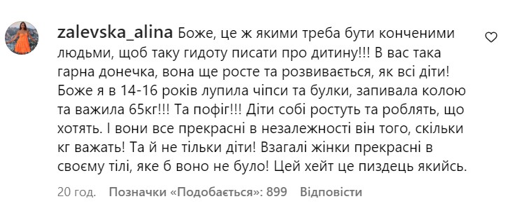 В ответ на контент подобного характера Полякова заявила, что в современном цивилизованном мире не может быть места для бодишейминга. "Это обращение к изданию "Главред", которое сегодня выпустило бодишеймерскую статью обо мне и моем ребенке. За границей вас бы стерли, отменили и взыскали бы многие миллионы евро. В современном мире бодишейминг любого человека, особенно детей, сильно наказывается. И я вас накажу! Я прямо сейчас обращаюсь в суд, чтобы доказать, что в свободной стране бодишейминг абсолютно неприемлем", - прокомментировала инцидент артистка.