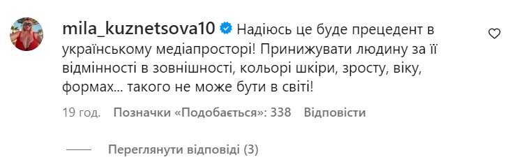 В комментариях под роликом-обращением певицы пользователи сети активно обсуждают сложившуюся ситуацию. Большинство из них поддерживают исполнительницу и соглашаются, что инциденту нужно дать огласку, чтобы предотвратить возникновение бодишейминга в дальнейшем. Вот некоторые комментарии людей: