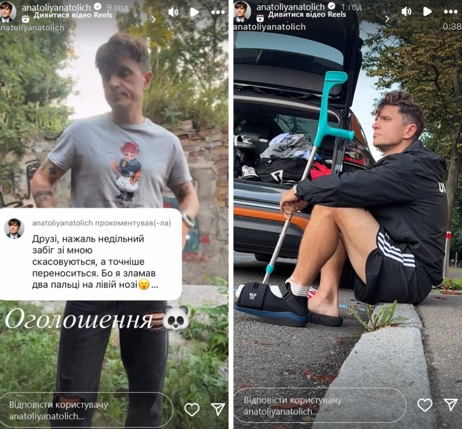 Анатолий Анатолич рассказал о досадной травме, заставившей его временно остановить спортивную активность и отменить благотворительный забег с подписчиками, запланированный на воскресенье, 10 августа.