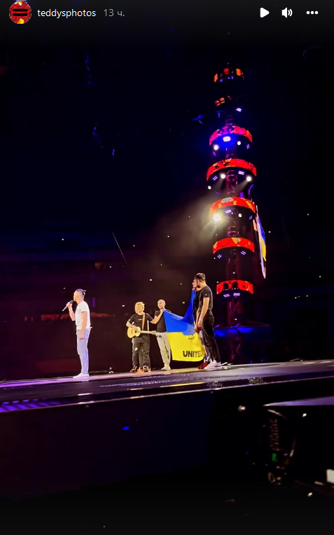 После эмоционального исполнения на сцену поднялись остальные участники группы "Антитіла" и они вместе с Эдом Шираном развернули украинский флаг. Тополя поблагодарил британского музыканта за возможность выступить с ним на одной сцене, а поляков - за поддержку Украины.