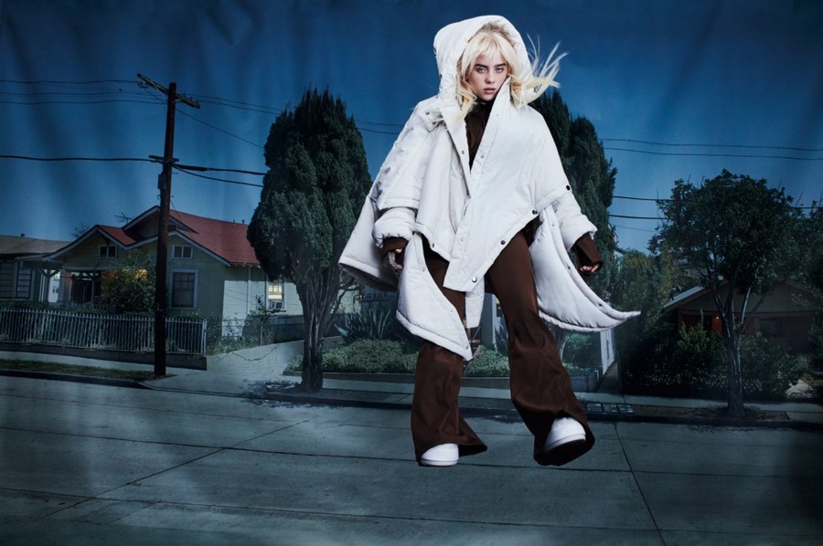 Авторы фотосессии решили показать читателю "старую Билли Айлиш" - в безразмерной одежде, которую она долго предпочитала открытой и обтягивающей. Фотограф создал иллюзию, в которой певица будто парит, забывая о папарацци и толпах людей на земле. Но работу артистки как модели оценили в этот раз на "троечку".