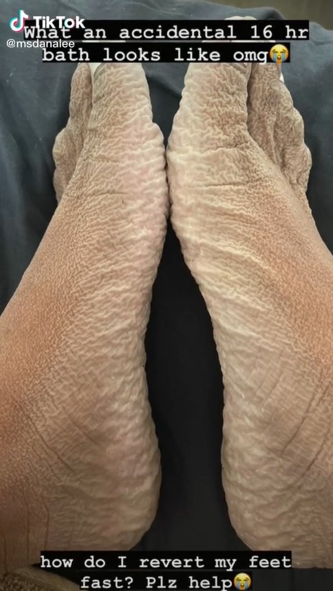Наблюдая, как в воде морщится кожа, блогер из TikTok с ником msdanalee решила провести эксперимент и узнать, какой она будет, если провести в ванной не час, не два и даже не три, а гораздо больше.