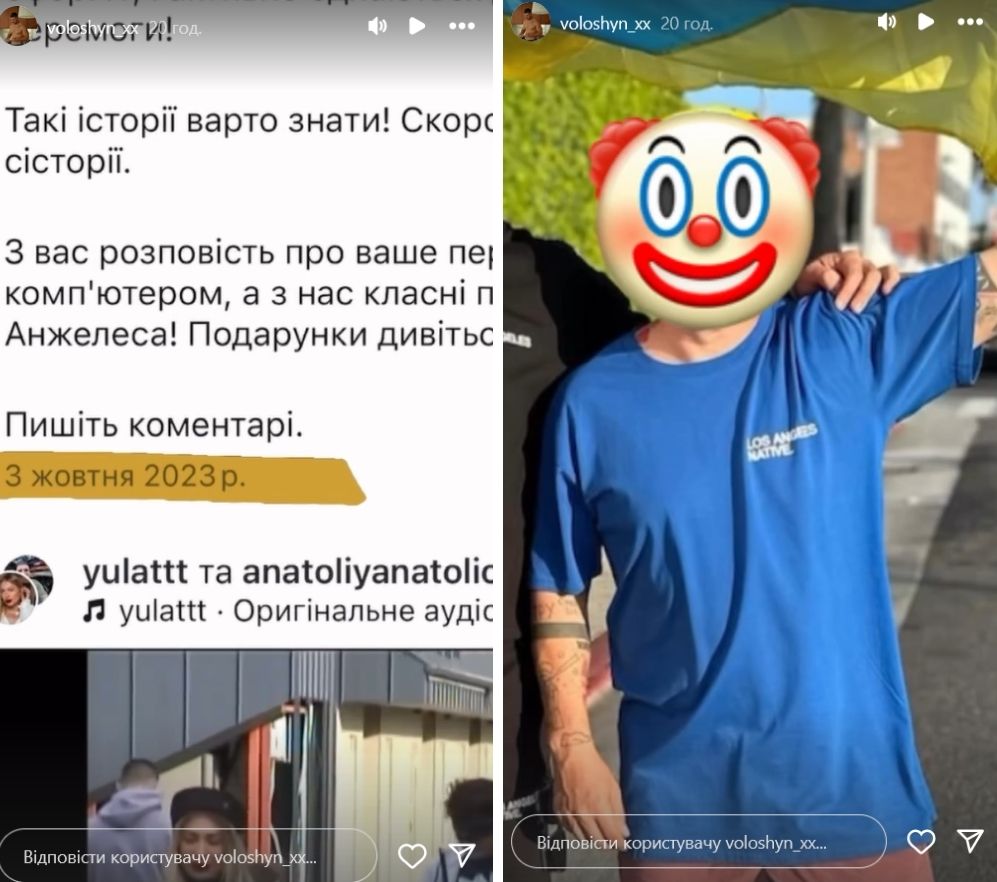 В Instagram-историях Волошин выложил скрин поста Анатолича 2023 года с фотографией из США, куда телеведущий ездил снимать фильм об украинцах в IT. "Тип выезжает в Америку с очень важной миссией - снять интервью! Воин и патриот", - написал блогер.