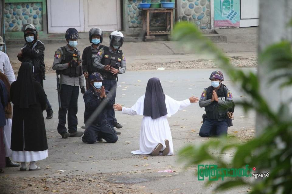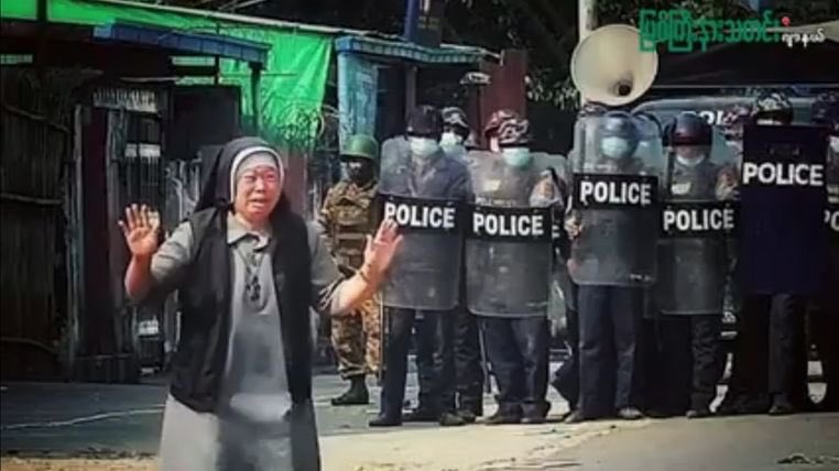 Сестра Энн Роуз не впервые обращается к хунте с просьбой остановить насилие. 28 февраля она уже выступала против вооруженной полиции, умоляя о милосердии к протестующим.
