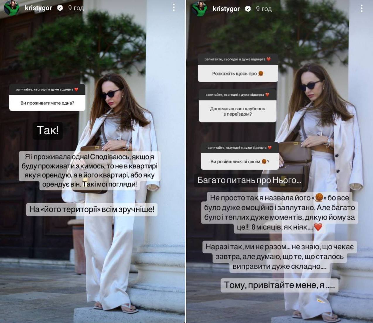 Недавно нотариус, которая сейчас большую часть времени живет в Вене, сообщила в своем Instagram, что переехала в новую квартиру. Подписчики поинтересовались, помогал ли с переездом ее бойфренд и живут ли они вместе. Кристина ответила, что в Австрии живет и всегда жила одна, а также призналась, что роман подошел к концу.