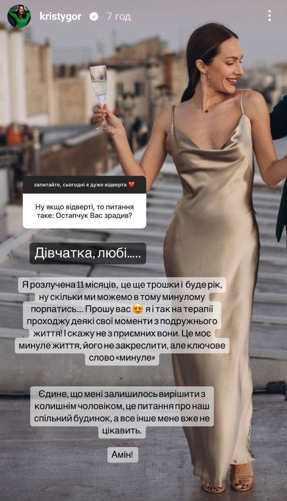 Одна из подписчиц подняла тему развода с Остапчуком. Кристина сказала, что не хочет копаться в прошлом и попросила больше не задавать ей вопросы о ее неудавшемся браке.