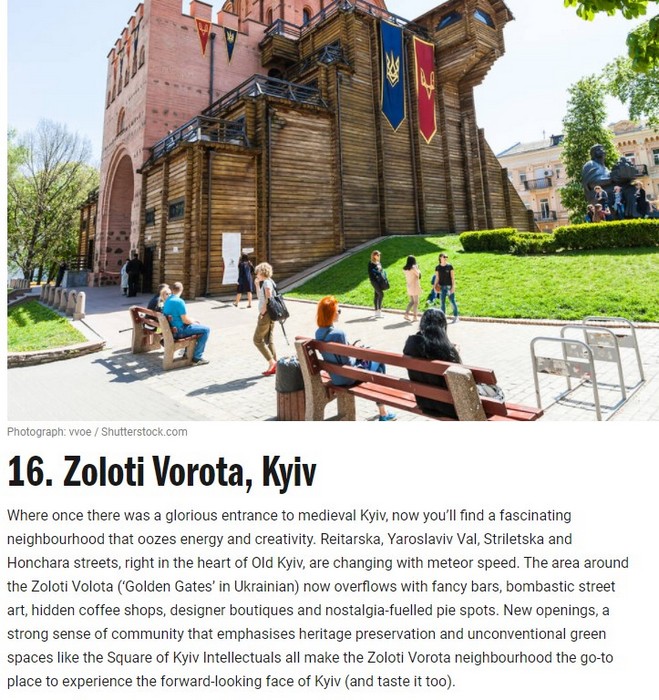 Британский журнал Time Out, посвященный путешествиям, культуре, гастрономии и досугу туристов, составил рейтинг 49 лучших районов мира. В него, заняв 16-ю позицию, вошел и киевский район у Золотых ворот.