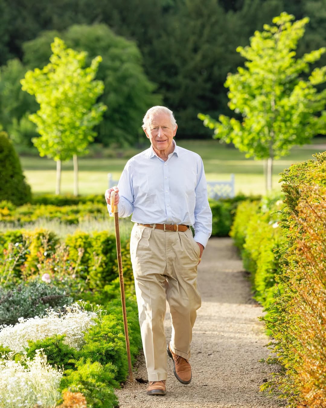 На фото он позирует на территории своего поместья Сандрингем в Норфолке, держа в руке деревянную палку для ходьбы. Фотографию опубликовали с эмодзи в виде воздушного шарика и подписью: "Сегодня 77! Спасибо за теплые слова и пожелания по случаю дня рождения Его Величества".