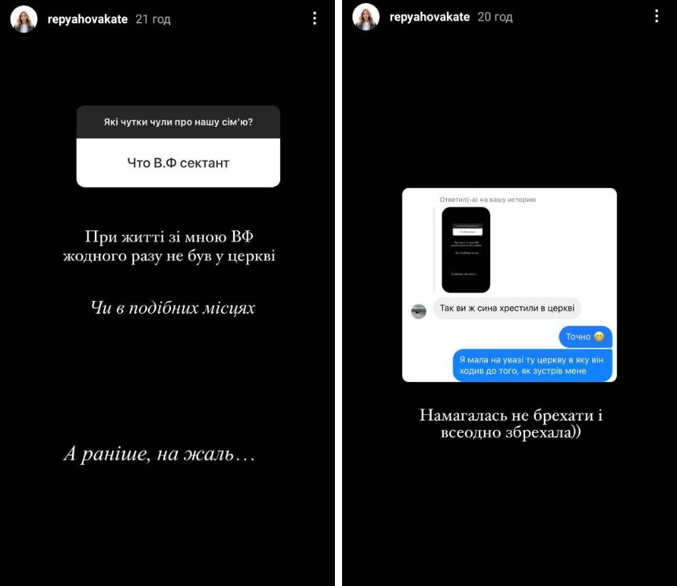В Instagram-историях Репяхова прокомментировала слухи, которые ходят про их семью. Так, один из подписчиков спросил, действительно ли Виктор Павлик является секнтаном.
