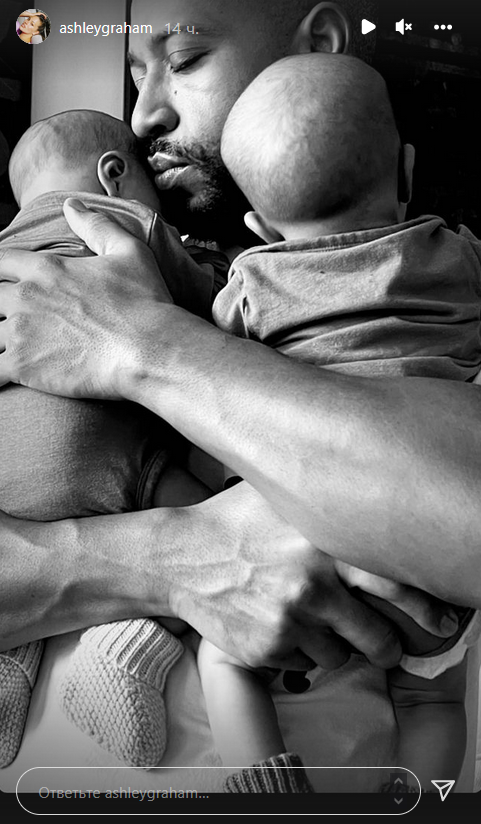 Трогательные кадры появились на странице пышнотелой звезды подиумов в Instagram. На первом фото 34-летняя Эшли держит на руках мальчиков, которых они с супругом назвали Роман и Малахи. В подписи к снимку модель поделилась, что материнство далось ей нелегко.