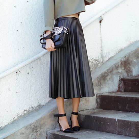 Также выгодным приобретением станет юбка – например, плиссе из эко-кожи, которая сейчас на пике популярности, или юбка-карандаш.