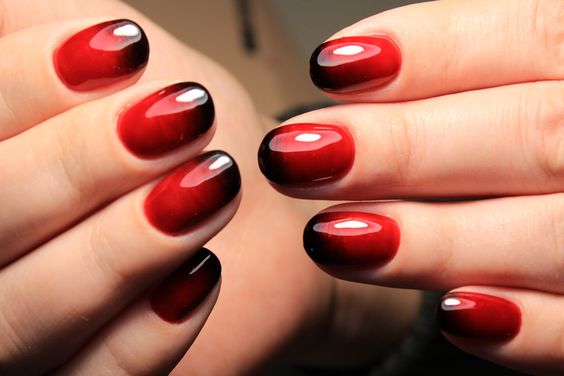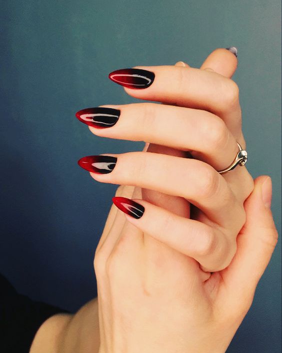 Не утратил своей популярности и градиент, или как его еще называют омбре, - переход цвета с верху ногтя к низу. С помощью красного и черного можно создать несколько интересных дизайнов.