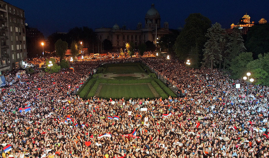 Фанаты собрались на площади в Белграде, чтобы поздравить Марию Шерифович с победой на "Евровидении-2007"
