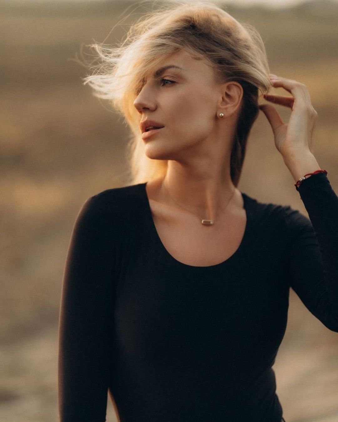 "Доброе утро и мирного дня! Мы еще на один день ближе к победе благодаря Вооруженным Силам Украины!" – написала звезда в своем блоге в Instagram. На снимках Никитюк появилась в черной блузе, брюках и с распущенными волосами. Образ она дополнила аккуратными аксессуарами: серьгами-гвоздиками и подвеской.