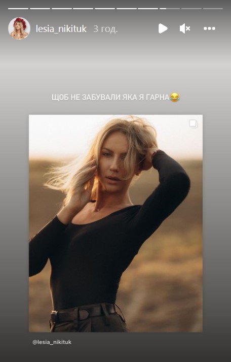 Напомним, Леся Никитюк – украинская телеведущая, блогер. Карьеру на телевидении начала после участия в программе "Рассмеши комика". Вскоре стала ведущей программы о путешествиях "Орел и решка". Снималась в четвертом и пятом сезонах шоу, а также была ведущей других развлекательных программ на каналах "Интер" и К1. В 2018 году перешла работать на "Новый канал", где ведет шоу "Кто против блондинок?", "Le Маршрутка", "Кто сверху?".