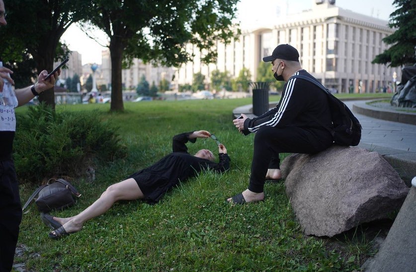 После того, как Андрей Данилко вместе с Инной Белоконь прогулялись по подземке, они также решили пройтись по летнему Киеву. Так, на одном из снимков можно увидеть, как исполнители остановились на Майдане, где "мама" Сердючки прилегла на траву, а Данилко присел на камень.