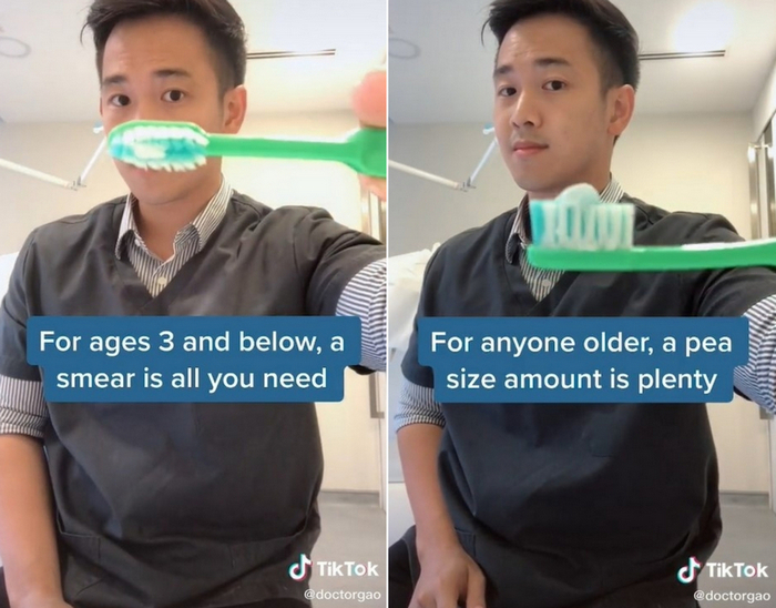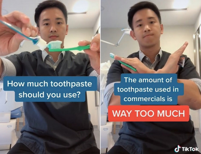 В своем самом популярном на сегодня видео дантист опроверг мифы компаний-производителей о количестве пасты и заверил фолловеров, что для здоровья и ухода за зубами достаточно будет вдвое меньшего количества.