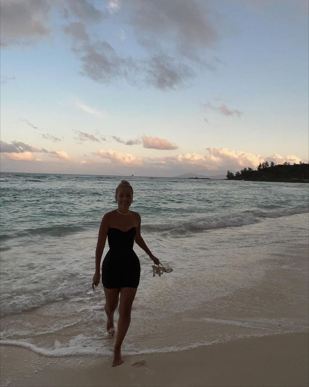 Перед возвращением в Украину Даша Квиткова опубликовала на своей странице множество снимков в купальниках, а также серию фотографий в коротком черном платье без бретелей.