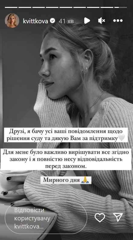 Звезда соцсетей не стала медлить с ответом и на своей странице заявила, что готова нести ответственность согласно закону: "Друзья, я вижу все ваши сообщения о решении суда и благодарю вас за поддержку. Для меня было важно решать все согласно закону, я полностью несу ответственность перед законом".