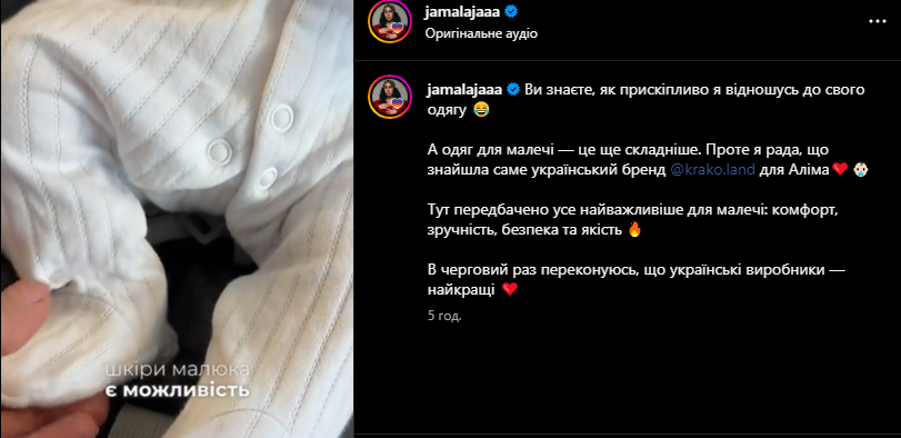 "Одежда для малышей - это еще сложнее. Однако я рада, что нашла именно украинский бренд", - подчеркнула знаменитость, говоря о качестве, комфорте и безопасности.