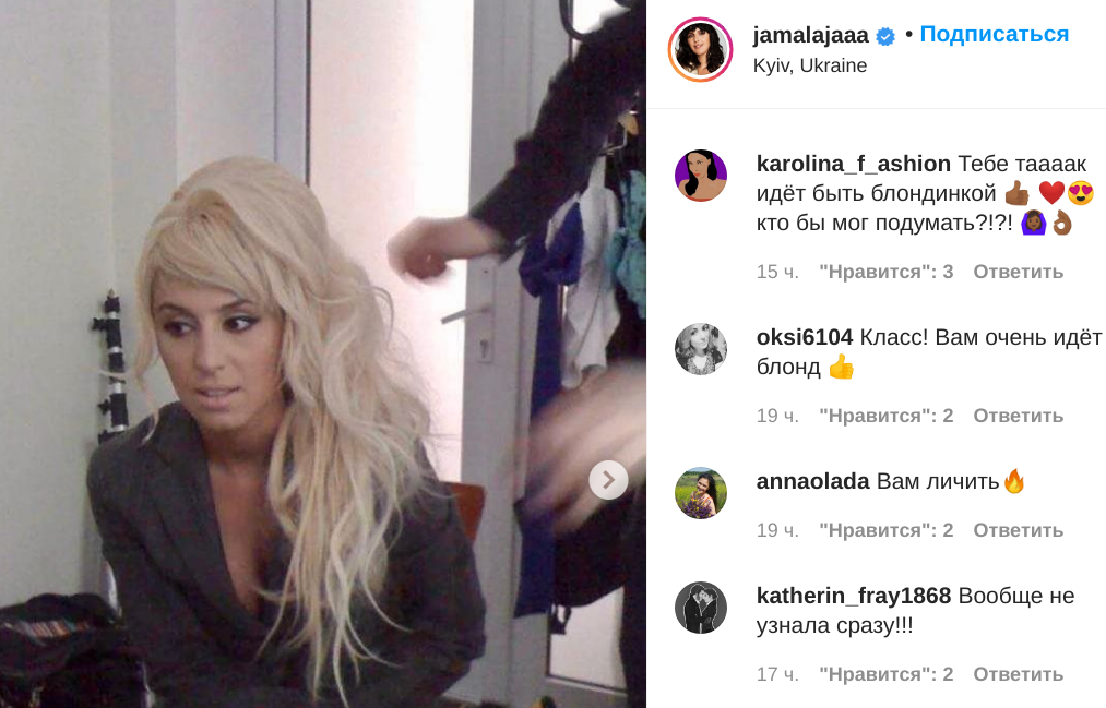 "В этом образе вы очень похожи на Эми Вайнхаус", - пишут в комментариях. - "Как же красиво вам блондинкой, не верю своим глазам!" "Вы тут мне напомнили или леди Гагу или Бриджит Бардо ! Очень стильно и красиво!"