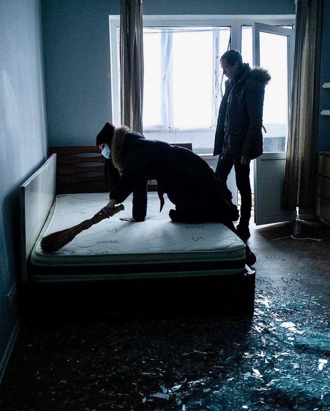 На следующих кадрах можно увидеть последствия в домах, которые оставила после себя российская ракета: обломки, стекло и брошенные детские фото.