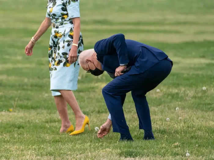 President Joe Biden picks a dandelion for First Lady Jill Biden from White House lawn pic.twitter.com/XrUje60oEx