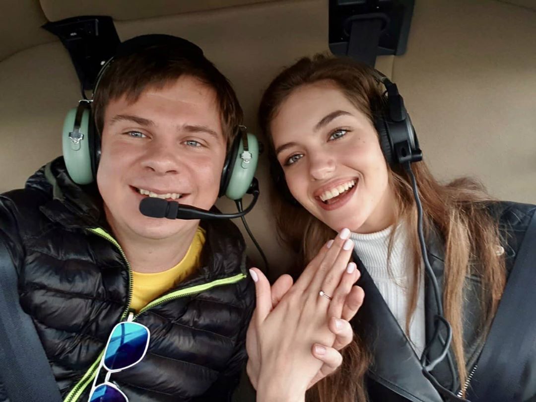 Предложение руки и сердца тоже было тайным. Как уже позже рассказывал Комаров, этот трогательный момент произошел в небе. Дмитрий организовал свидание на вертолете, где и вручил кольцо своей возлюбленной.