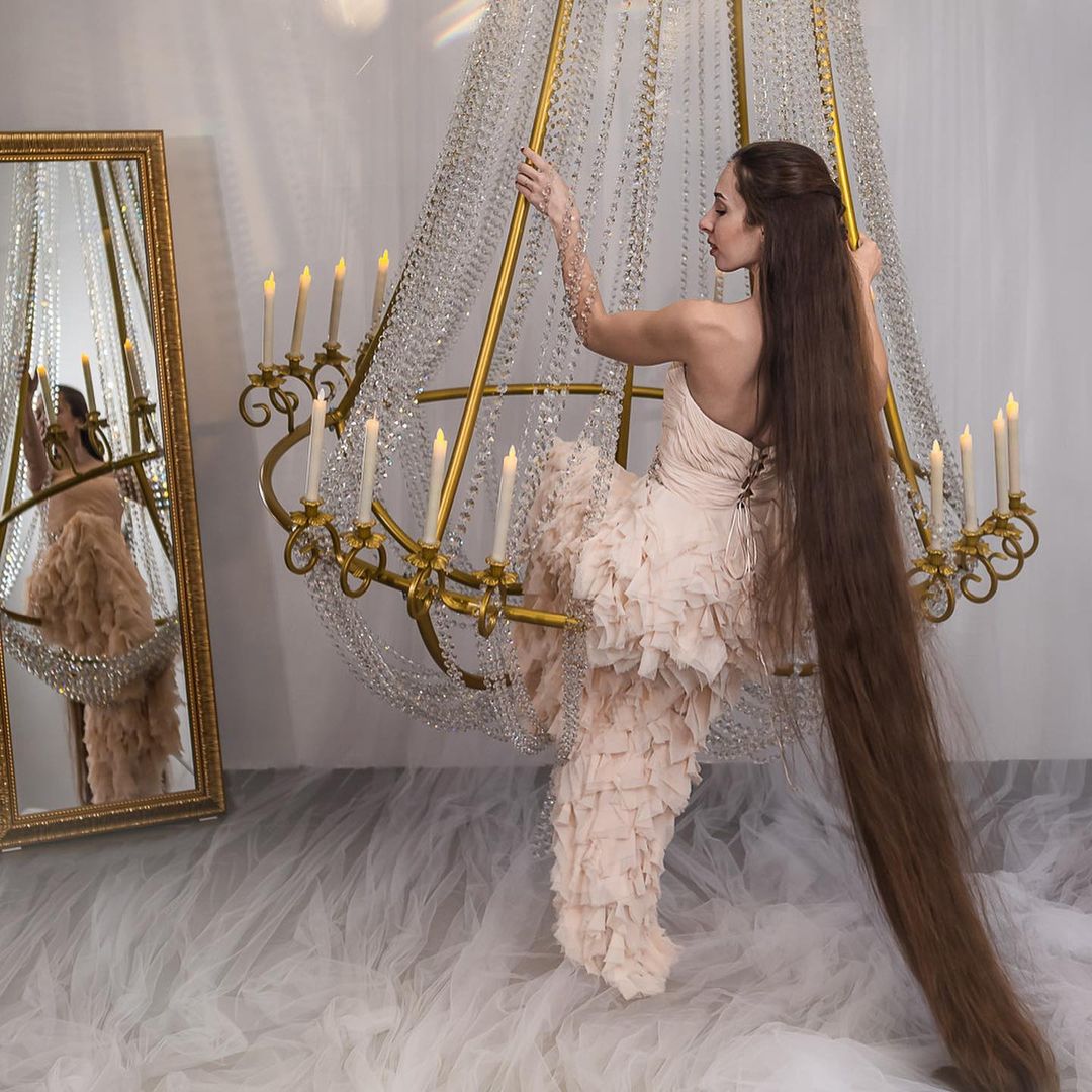 "Мне просто захотелось длинные волосы. Сначала думала, что они будут по пояс, потом ниже попы, потом до колен и потом много лет я держала длину до пят. Во время беременности волосы отрасли намного больше - я уже не захотела их отрезать. Длину ближайшее время убирать точно не собираюсь. Я кайфую от своих волос!", - поделилась Ануфриева.