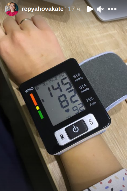 Екатерина предположила, что ей стало плохо из-за жары в торговом зале. Позже она поделилась фотографией с тонометром, который показал повышенное давление. Кроме головокружения, девушку также напугало затрудненное дыхание.