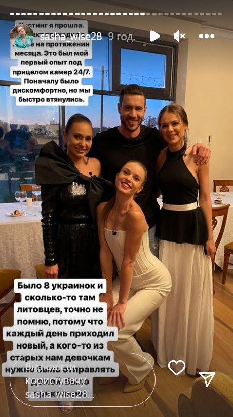 "Кастинг я прошла. Проект проходил в Литве в течение месяца, - продолжила делиться она. - Это был мой первый опыт под прицелом камер 24 на 7. Сначала было дискомфортно, но потом мы втянулись".
