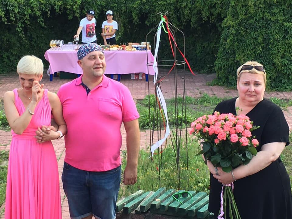 "Перебирал архив фото, вспоминал, ворошил в голове старые файлы, которые память перемещает все в более дальние уголки и набрел на фотку с нашей с Катей "розовой свадьбы", когда Маринка спонтанно вызвалась быть тамадой и разрывала нас своей импровизацией в образе церемониймейстера житомирского ЗАГСа - на фото Катя уже плачет от смеха", - подписал кадры актер.