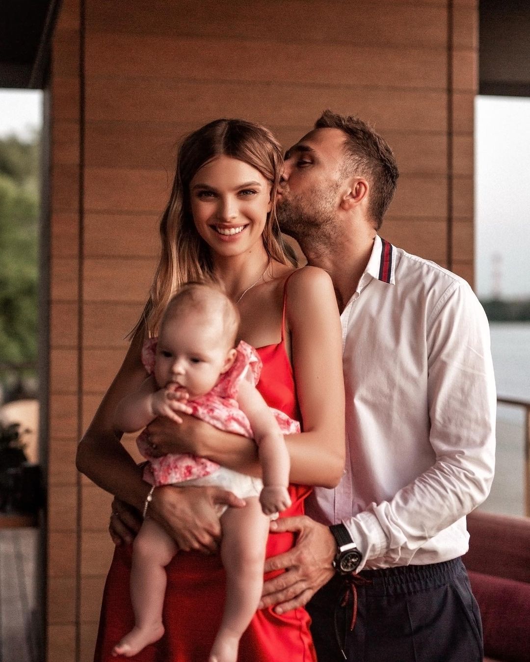 Максим Михайлюк и Даша Хлистун с дочерью Арианой