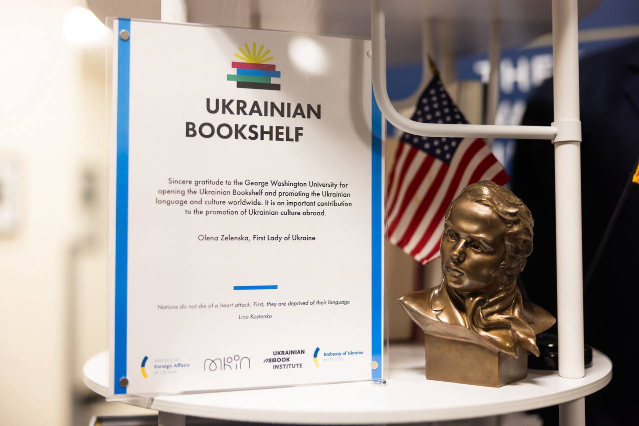 Первая леди Украины в рамках визита в США, куда она прибыла по приглашению своей американской коллеги Мелании Трамп, посетила Университет Джорджа Вашингтона - одно из ведущих заведений страны. Там находится Школа международных отношений имени Элиота, где появилась украинская книжная полочка, открытие которой состоялось с участием Елены Зеленской.
