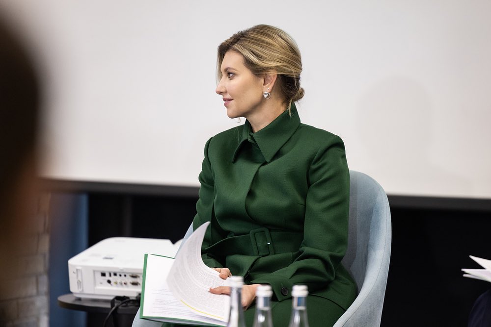 Елена Зеленская приняла участие в открытом диалоге с молодежью "Забота о ментальном здоровье". Для встречи с молодым поколением первая леди выбрала стильный образ.