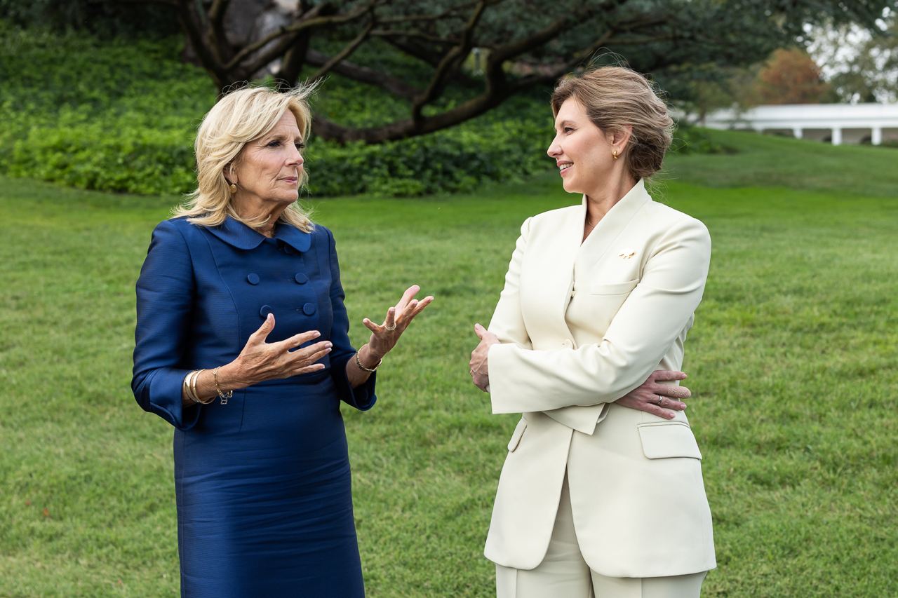 На встрече с Джилл Байден Елена Зеленская рассказала своей коллеге, как прошел третий саммит первых леди и джентльменов, который она провела в Киеве в начале месяца. А также поблагодарила за помощь в реализации проектов в сфере ментального здоровья, которую Украина получает от Агентства США по международному развитию.