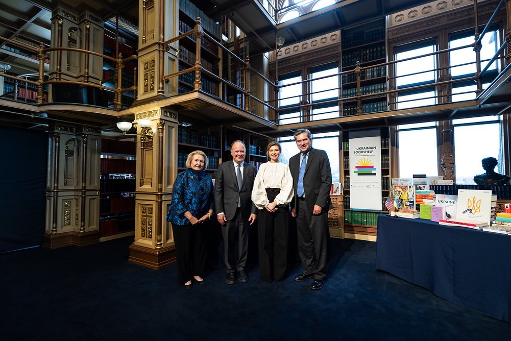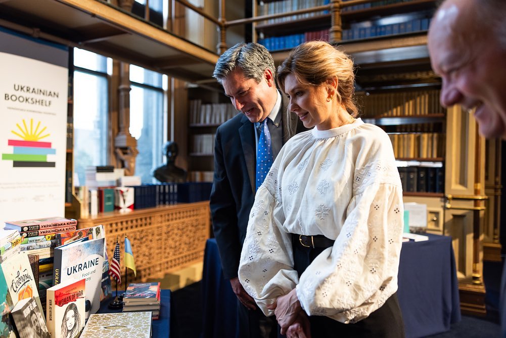 Первая леди также открыла в университете украинскую книжную полочку, передав учреждению издания по истории, литературе и т.д. Таким образом, США стала 40-й страной проекта "Украинская книжная полочка", в рамках которого переданы лучшие украинские издания ведущим библиотекам мира. Всего передано уже более 47 книг.