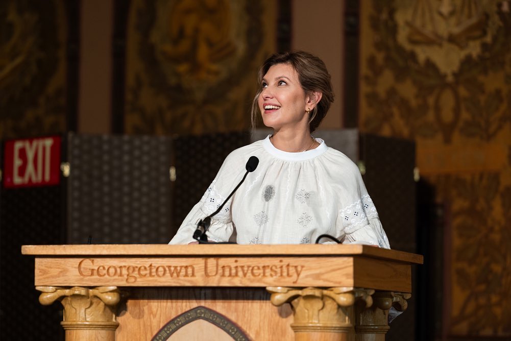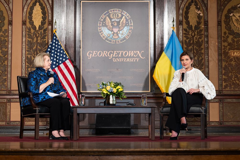 Во время визита в Вашингтон Елена Зеленская встретилась с Джо и Джилл Байденами в Белом доме, а также посетила Джорджтаунский университет - одно из ведущих учреждений США, где учатся будущие лидеры страны.