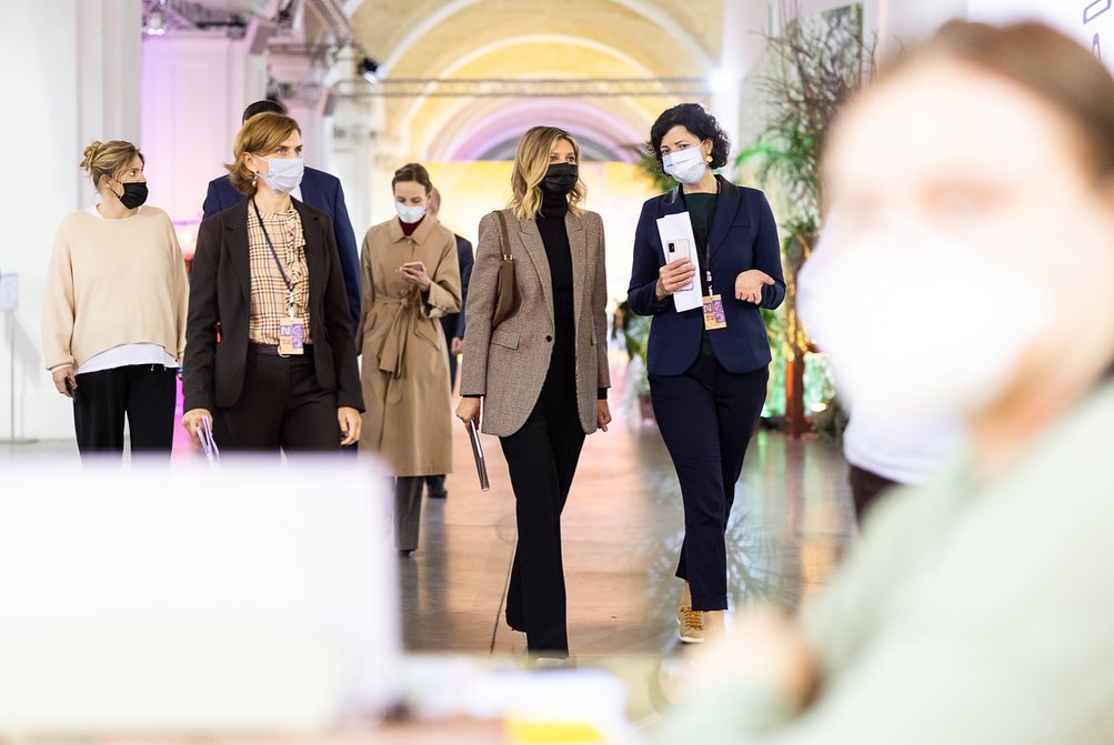 Елена Зеленская посетила фестиваль для юных деятелей искусства, исследовательниц и исследователей "NEOсвитний Арсенал". Для публичного выхода в свет первая леди выбрала стильный осенний наряд, в котором выглядела безупречно.
