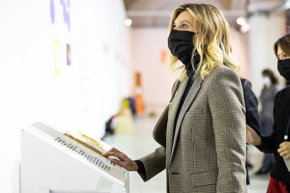 Фотографии с мероприятия жена президента опубликовала на официальной странице в Instagram. На выставку Зеленская надела черные брюки и гольф, поверх которого накинула удлиненный пиджак в клетку, который имеет неимоверную популярность у модниц в этом сезоне. Дополняли лук сумочка с короткой ручкой шоколадного цвета и черная защитная маска для лица.