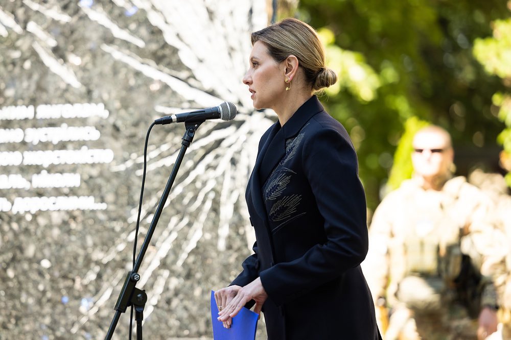 "Трудно открывать памятники погибшим, особенно если эти погибшие - дети. Потому что дети должны жить. Я вспоминаю сейчас фото, которое облетело все СМИ: папа, держащий за руку погибшего на остановке сына. Это было в Харькове после очередного российского обстрела. Такое невозможно забыть. И невозможно с этим смириться. Родители держат своих детей за руку, когда они делают первые шаги, когда впервые ведут в садик, в школу. Самое страшное, что можно себе представить, - держать руку погибшего ребенка. Так просто не должно быть", - сказала супруга президента.