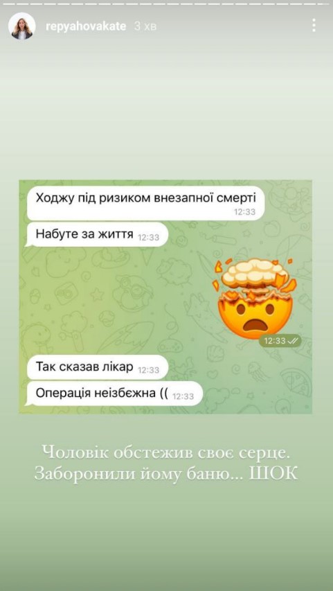 Из опубликованных кадров можно увидеть, что Павлик сообщил в СМС своей жене, что "ходит под риском внезапной смерти". Это стало известно после обследования сердца. Кроме того, из-за этого мужчине запретили посещать баню. "Хожу под риском смерти. Приобренное при жизни. Так сказал врач. Операции не миновать", - отметил 57-летний исполнитель. "Муж обследовал свое сердце. Ему запретили ему баню… Шок", - прокомментировала его слова блогер.