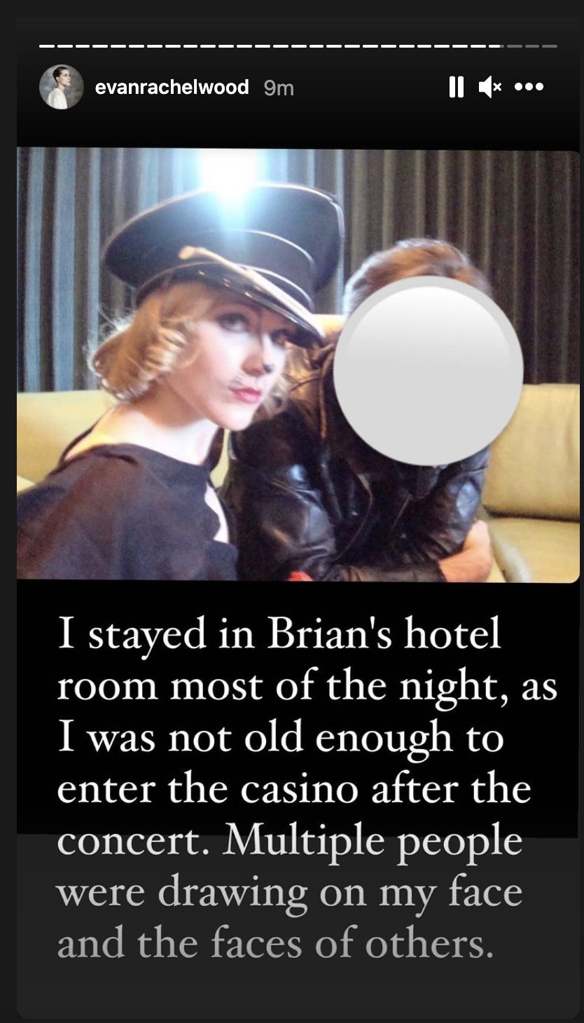 Актриса пожаловалась, что из-за юного возраста не смогла пойти в казино после концерта Мэнсона, и оставалась в его номере, где "несколько человек рисовали на ее лице".